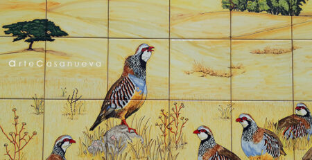 «Perdices en el campo sevillano", azulejos de 15cmx15cm. Detalle de parte de mural pintado a mano con la técnica de... read more